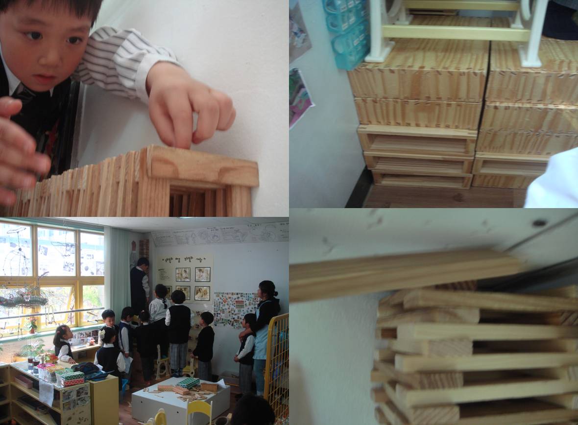 탑이 높아지고 카프라와 나무블럭을 모두 사용할 때쯤, 모든 유아들이 쌓고 있는 유아를 응원하기 시작했고, 그 열기는 뜨거웠습니다.