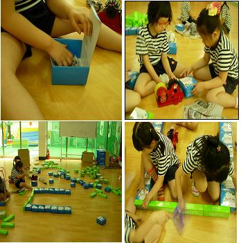 유아3: 상자 벽돌을 많이 만들고 이걸로 만들자.