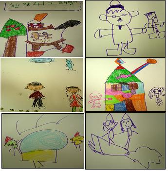 유아3: 동화책에 보면 그림이 있잖아요. 그것만 봐도 동화를 알 수 있으니까 우리도 그림을 그려봐요.
