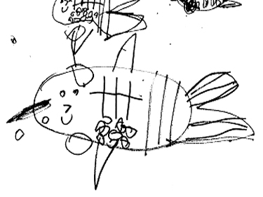 유아: 물고기가 빨아 먹었다가 뱉었어요. 밥이 맛이 없어서 뱉어요.