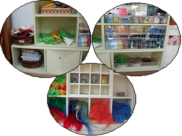 옷을 고정시키는데 필요하다고 했던 것들을 따로 구비해 두고, 의상과 관련 된 것들을 모아 두니, 유아들의 흥미가 더욱더 높아집니다.