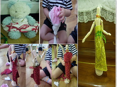 -인형의 옷 대신 다른 천을 둘러 꾸며주는 아이