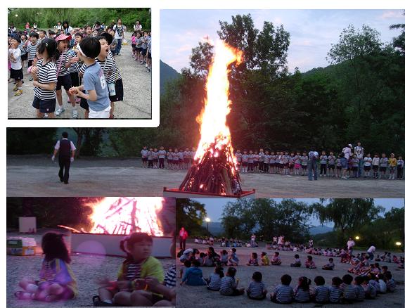 유아: 저녁에 모닥불 피워 놓고 놀아서 정말 좋았어요. 그리고 야광봉도 받아서 기뻤어요.
