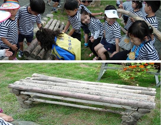 - 캠프 일정 중 녹차밭을 둘러보던 아이들의 눈이 반짝거렸다. 아이들이 평소에 관심을 가졌던 나무의자를 발견한 것이다.