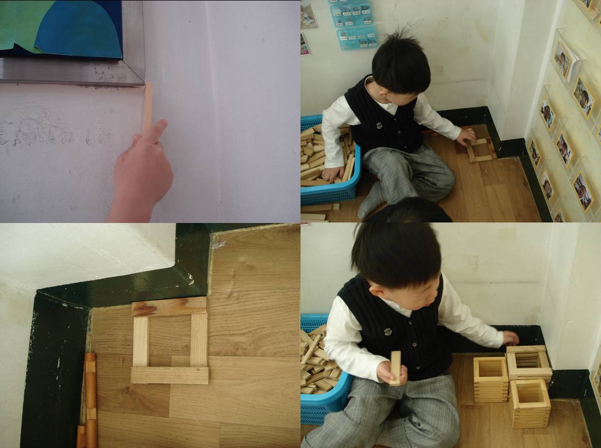 유아는 카프라의 한 쪽을 벽에 붙여 쌓으면 바르게 쌓아지는다는 것을 말해주었습니다.
