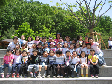 장소에 도착하여 유아들은 해냈다는 성취감을 느끼며 만세를 외칩니다. 그늘에서 쉬면서 먹는 오이 맛도 너무나 꿀맛입니다.