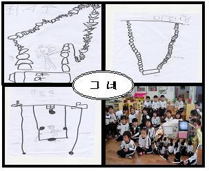 그리고 어떠한 방법으로 탑을 쌓고 그네를 만들고 싶은지 알아보기 위해 표상하는 시간을 가졌고 그림을보며 이야기 나누었다.