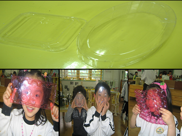 ** 전체적으로 공유시간을 가진 후 유아들이 플라스틱을 얼굴 앞으로 대어보고 눈에 보이는 것과 보이지 않는 것을 확인 합니다.