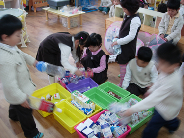 <분류하기 - 유아들에게 빈통을 제공>