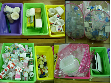 ** 유아들은 같은 것과 비슷한 것을 분류하여 나누어 담습니다. 여러 종류의 플라스틱 중 친구들과 이야기 하여 보이는 것과 보이지 않는 것으로 나누어 매체를 통에 담기 시작합니다.유아들이 나누어 담은 매체! 너무나 깔끔하고 나누어 담은 것을 보는 유아들의 표정이 너무나 뿌듯해 보입니다.