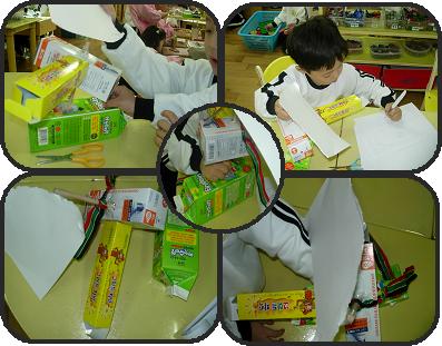 유아들은 재활용품으로 하고 싶은 것이 많았다. 새싹반의 유아들은 재활용품으로 무엇을 할 수 있을까?* 해적선 *