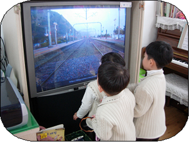 # 유아들은 TV화면에 띄어놓은 기차를 보면서 하나씩 이름을 붙입니다. 그리고 내가 알고 있는 것을 다른 유아에게 설명합니다. 유아들은 기차에 대한 즐거웠던 추억들을 떠올리며 여러 종류의 기차를 보고 즐거워 합니다.