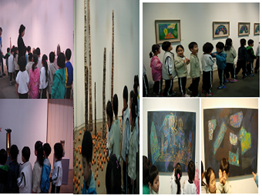 들뜬 마음으로 전시회 관람을 위해 대구문화예술회관으로 출발! 따사로운 햇빛과 활짝 핀 벚꽃들이 유아들의 즐거운 마음을 한층 더 흥겹게 해줍니다. 작품을 보며 궁금한 것들을 물어보고, 알아갑니다.
