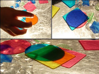 -이야기를 한 후부터 다른 색과 모양의 도형을 합쳐 보기 시작합니다. 3가지 색 밖에 없는 도형이 여러 색깔로 나누어지게 됩니다.