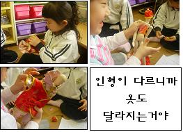 유아4: 진짜 웃긴다! 인형이 달라지면 옷도 달라져야겠어.
