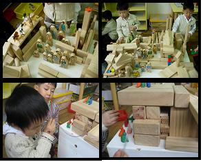 쌓기 영역의 유아들은 블록을 빼려고 했으나 다른 유아의 의견을 받아들여 철사를 연결해서 물고기를 볼 수 있도록 만들고 동물원을 완성했다.