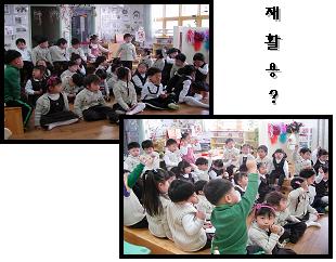 아이들과 재활용이란 말을 알고 있는지 이야기 나누어 보았다.