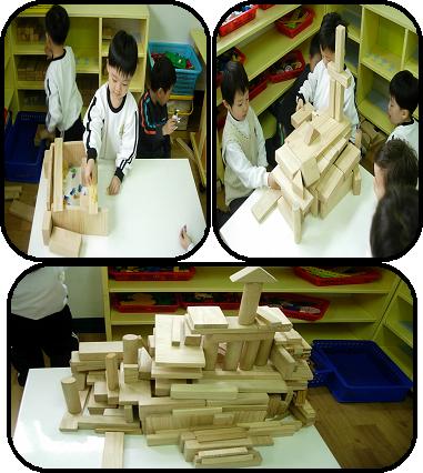 멋진 작품들이 탄생하기 시작하는 쌓기 영역.