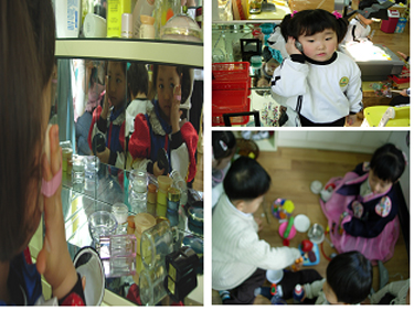 -유아들은 평소에 생활 속에서 겪었던 것들을 꽃잎반에서 놀이를 통해 표현해 나갑니다.