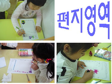 아직은 유아들이 글자쓰는 것을 어려워하여, 친구에게 그림으로서, 도장으로 예쁘게 꾸며서 마음을 표현해 갑니다.