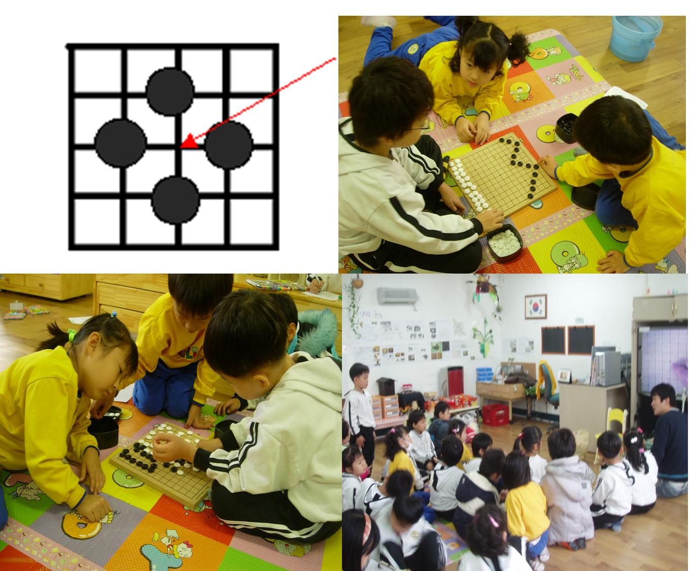유아들은 서로 알고 있는 지식을 나누어주며, 바둑활동을 즐기고 있습니다.