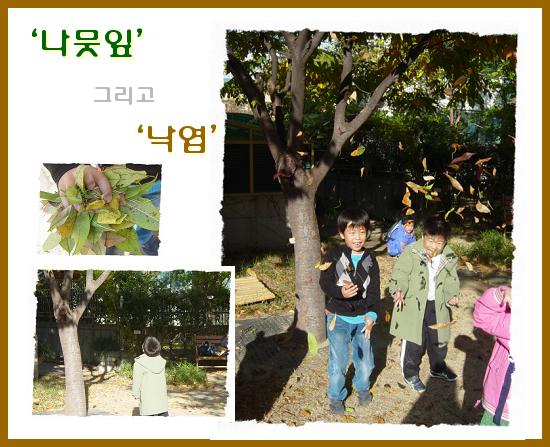 기울이기 시작했다. 나뭇잎과 낙엽! 관심을 가지지 않으면 그냥 스쳐지나갈 말들이지만 귀를 기울이는 이슬반 아이들에게 새로운 의미로 다가오고 있었다.
