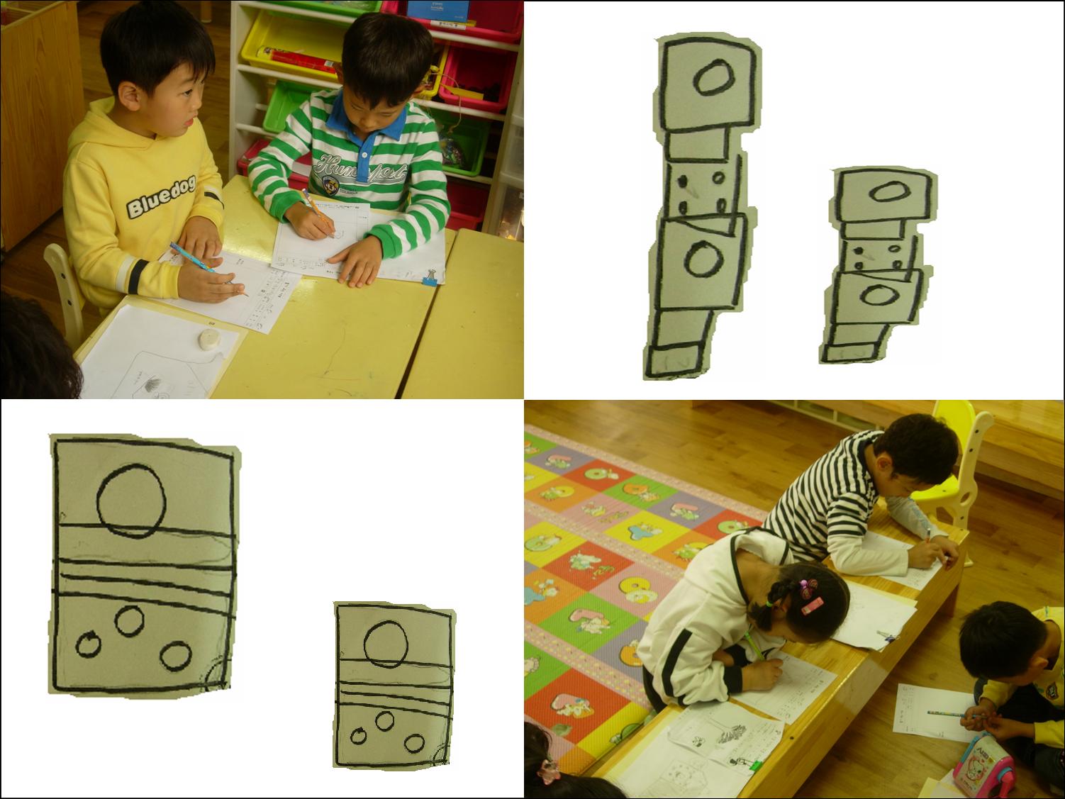 교실 한쪽 모서리 틈에서 유아들은 쌓기를 시작한다. 모양에는 변화가 없지만, 자로 높이를 제어가며 한층 한층 조심해서 쌓아 올린다.