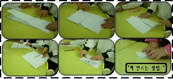 책접는 방법은 모르지만 책을 접고싶어 하는 유아들..책접기의 방법을 알고 있는 유아들이 방법을 모르는 유아에게 자기가 알고 있는 책접기 방법을 가르쳐주며 또래간의 학습이 이루어지고 있다.