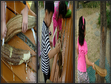 =유아들은 같은 수세미에 씨앗이 다른 것에 의문을 가지고 직접 관찰합니다.