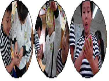 수세미를 만지는 유아들의 얼굴에는 즐거움이 묻어나 있습니다. 이렇게 수세미는 유아들에게 한 발 더 친숙하게 다가옵니다.