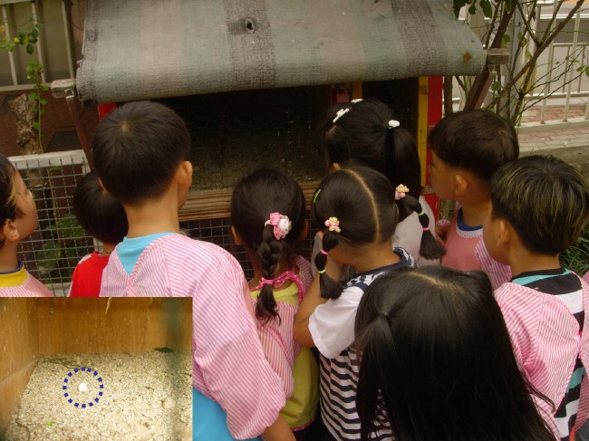 유치원 마당에서 살고 있는 잉꼬 집에서 태어난 흰색 작은 알이 햇살반 친구들을 흥분시켰습니다.