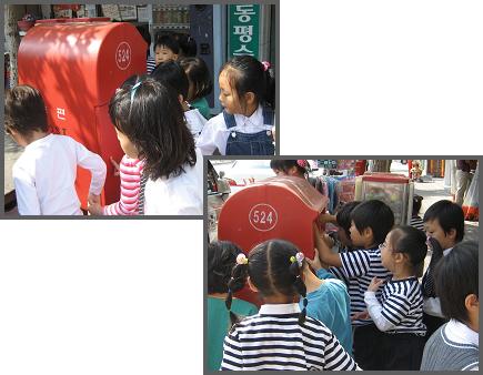 아이들은 편지를 받는 우체통과 편지를 보내는 우체통을 쉽게 구분하였다.