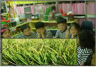 모내기등...쌀의 수확과정에 대해 유아들에게 이야기 해 주었지만 이해가 쉽지 않았는지 계속해서 질문을 했다.