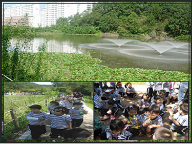 가족들과 자주 함께 한 곳이여서인지 유아들의 마음은 더욱더 들떠있습니다. 산을 올라가기 전 공원에는 유아들을 반겨 주는 듯 분수의 물 솟음이마음까지 시원하게 합니다. 등반을 하면서 여러 가지 색깔의 나뭇잎과 도토리, 잠자리, 나비와도 만납니다.