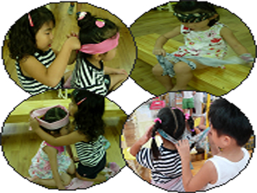 오늘도 유아들은 천을 가지고 놀이를 합니다. 어제한 놀이를 하기도 하고 새로운 놀이를 찾기도 하고..천으로 몸을 감싸고 만지작거립니다. 테잎으로 붙이기도 하고 옷에 넣기도 하면서..