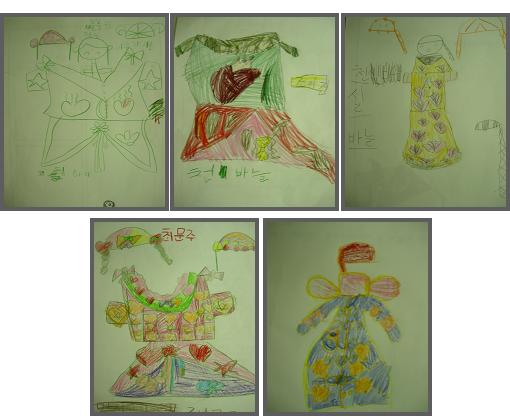 -아이들이 설계한 옷들은 대부분 화려한 중국의상과 비슷했다. 병에 입혀져 있는 옷들을 이전 경험으로 했기 때문인 것 같았다.