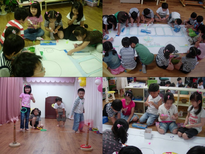 각 교실마다 하나의 테마를 가지고 교실을 놀이마당으로 바꾸어 놓고 우리 아기천사는 교실을 옮겨다니며, 준비되어진 놀이 마당에서 친구와 함께 즐거운 시간을 보냈습니다.