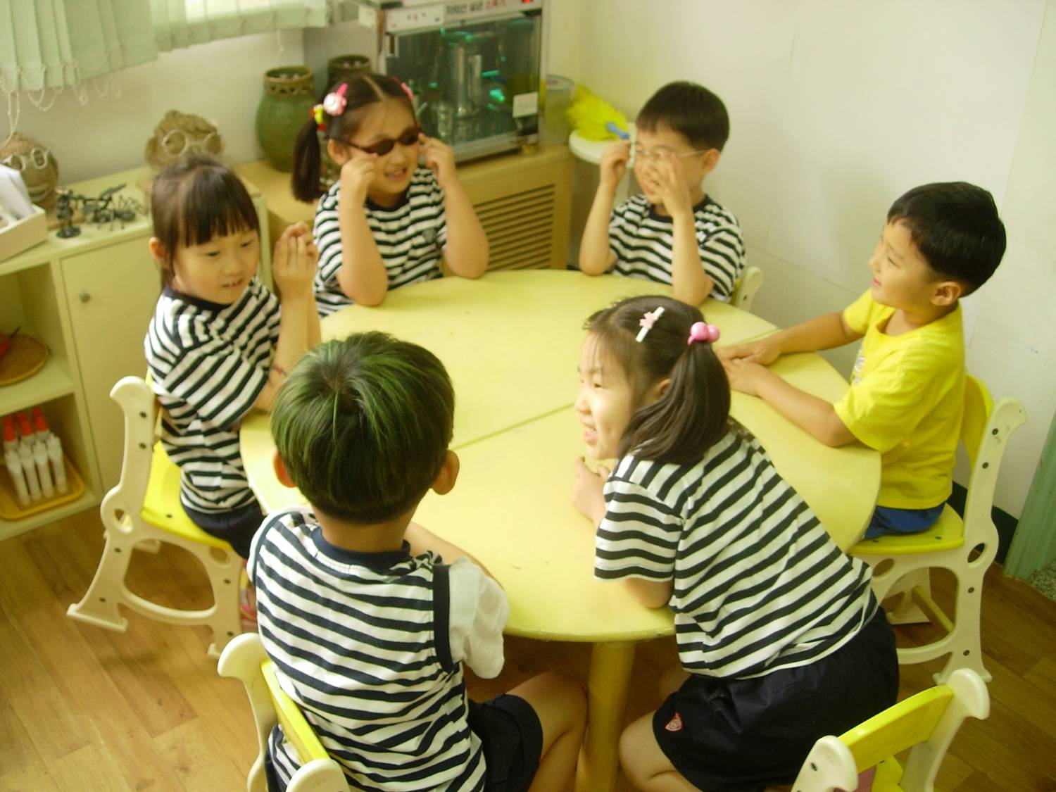 아래에만 있다고 생각하는 유아는 2명, 안경마다 다를 수 있다고 생각하는 유아는 4명으로 생각이 정리되었다.
