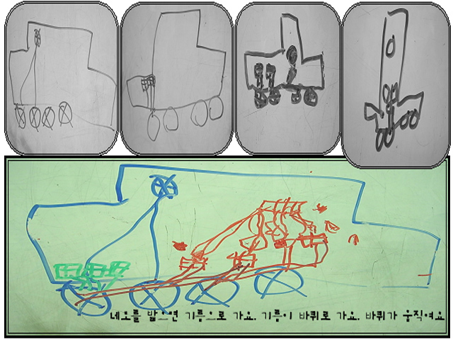 -기름이 ‘있고 없고’의 말을 ‘살아있다. 죽어있다’는 말로 표현했다. 자동차를 움직이게 하는 원동력이 기름이라는 것을 유아들은 자신만의 언어로 표현하고 있다.
