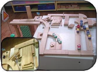 쌓기 단상위가 아닌 그 옆에 또 다른 도로를 만드는 잎새반 유아..