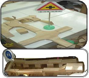 예전에는 십자형 도로가 무엇인지도 몰랐던 잎새반 유아들이 정말 열심히 표지판 공부를 했는지 십자형 도로를 크게 만들어 놓고 그 위에 십자형 도로 표지판을 세우는 모습을 관찰 할 수 있었다.
