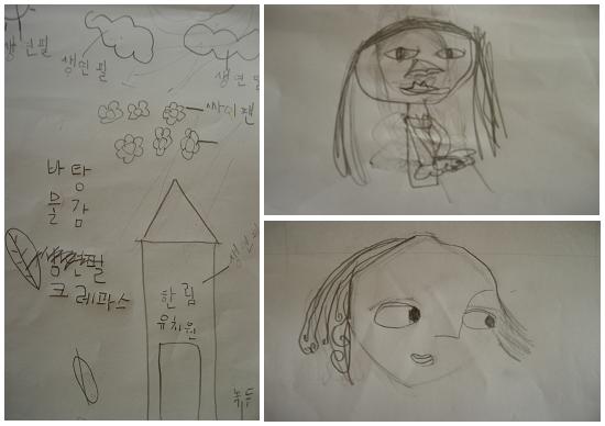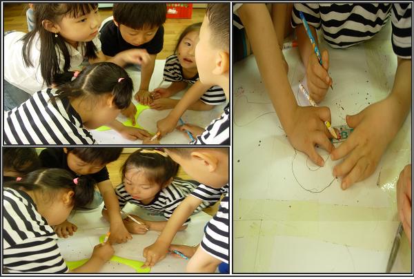 유아2: 맞아요. 다른 친구들이 그린 그림은 선생님이 사진으로 다 한 장으로 만들었으니깐 그냥 그것만 붙이면 되잖아요.