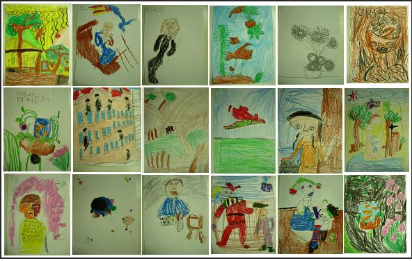 조금 힘들지만 점점 커져가는 부메랑을 보며 기뻐하는 아이들... 빨리 큰 부메랑을 보고 싶다고 합니다.아이들이 그린 멋진 명화들...