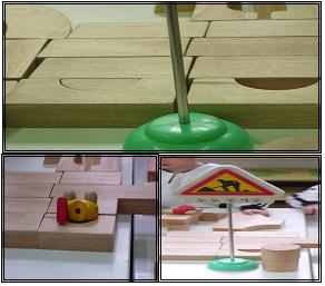 둥근 자동차 도로를 만들려고 하니까 가운데 비어 있는 여백이 많아서 그런지 쌓기블록이 쌓기 단상에 걸쳐져 바닥으로 떨어지는 것이었다.