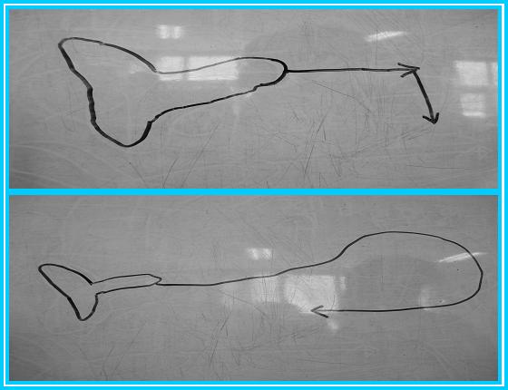 유아3: 아.. 잘 못 던진 건 그냥 앞으로 쭉 날아가고 잘 던진 건 아래에서 위로 올라갔다가 조금 돌아와.