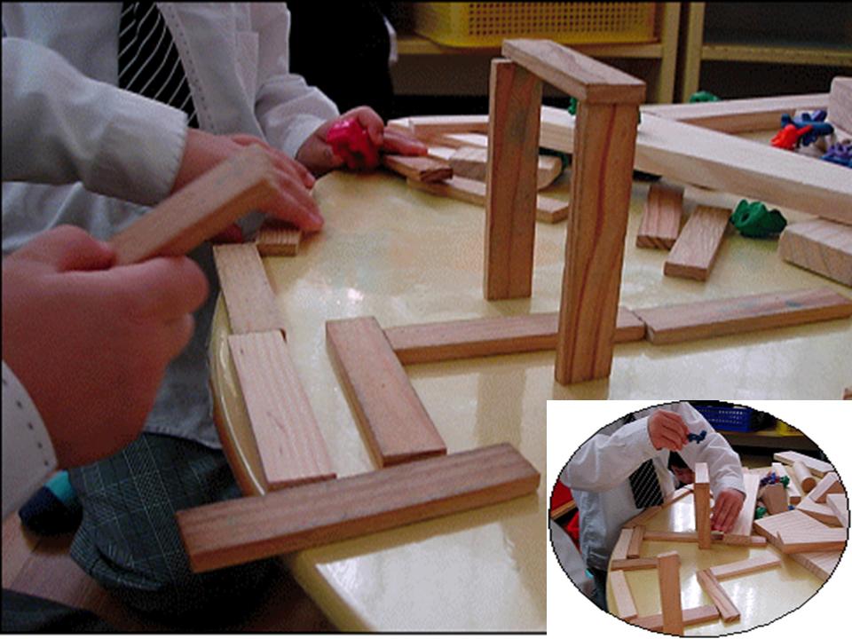 -고무로 된 자동차와 비행기 모형만을 가지고 놀이를 합니다. 그러다 이렇게 자동차가 다니는 길도 만들어 주었습니다.