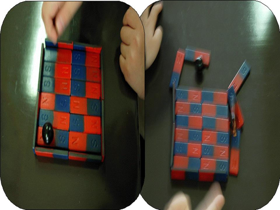 -어제도 오늘도 구슬로 팽이놀이을 합니다. 그런데 몇명의 친구들이 자석영역의 자석을 붙여서 그 위에서 팽이를 돌리고 있습니다.