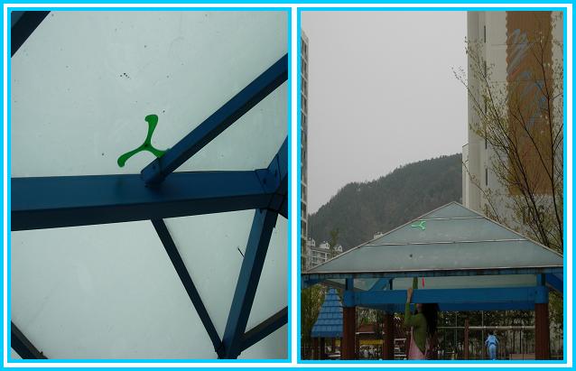 아이들의 기대감에 바람을 타고 날아가는 부메랑 중 하나가 벤치의 지붕 위에 착지하는 상황이 생겼다. 아이들 뿐 아니라 교사들도 당황된 순간이였다.