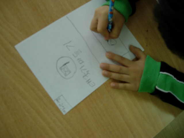" 선생님 이건 태극기인데요. 손잡이가 있어야 해요." " 손잡이? 나무막대가 안 보이는데 어떻게 하지? "