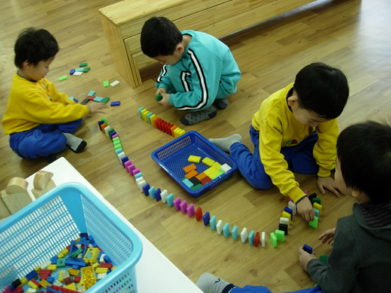 아이들에게 "함께"라는 의미는 참 행복한 것 같습니다. 살며시 다가와 도미노를 세우자 " 넌 그 쪽부터 시작해. 내가 이 쪽 할테니깐.." 라며 함께 어울리는 아이들... 하나를 더 가지고 놀지는 못 하지만 그래도 웃음은 두배 입니다.